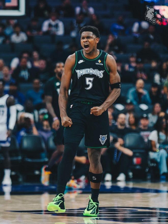森林狼队超级球星安东尼爱德华兹,在此役表现强势。爱德华兹出战30分钟,16中7,三分11中5,罚球8中7,狂砍26分4篮板5助攻2抢断的全能数据,正负值+25全场最高。爱德华兹轰下了全场的最高分,还投进了全队最多的5记三分球。爱德华兹还是此战的抢断王,他在兼顾攻防两端的同时,还送出了全队最多的助攻。实现了全方位爆发的爱德华兹,展现了不俗的领袖气质。