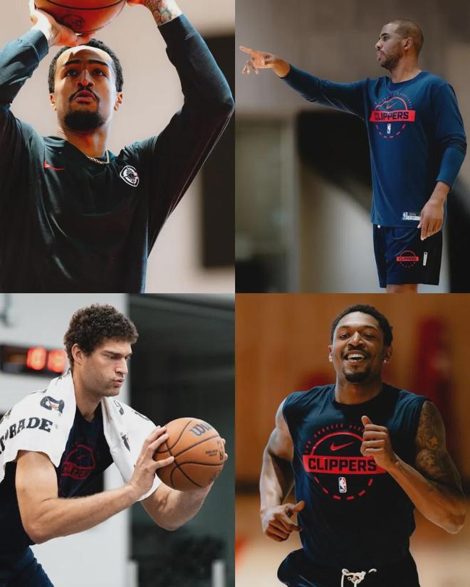 快船外线也在补强:2年1100万美元签约比尔,1年360万美元签约保罗。比尔把3号球衣让给保罗,自己改穿0号。快船轮换阵容中有6名球员超过33岁:保罗40岁,大洛37岁,巴图姆和哈登都是36岁,小卡34岁,博格丹33岁。