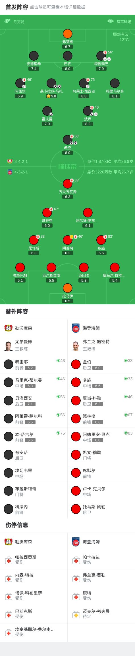 勒沃库森6-0大胜海登海姆,希克、马扎分别双响,波库传射